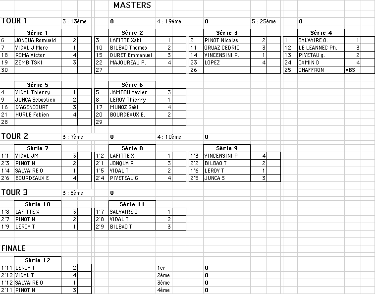 En attend un compte rendu détaillé de ces Masters 2009 à Bidart, voilà les résultats :